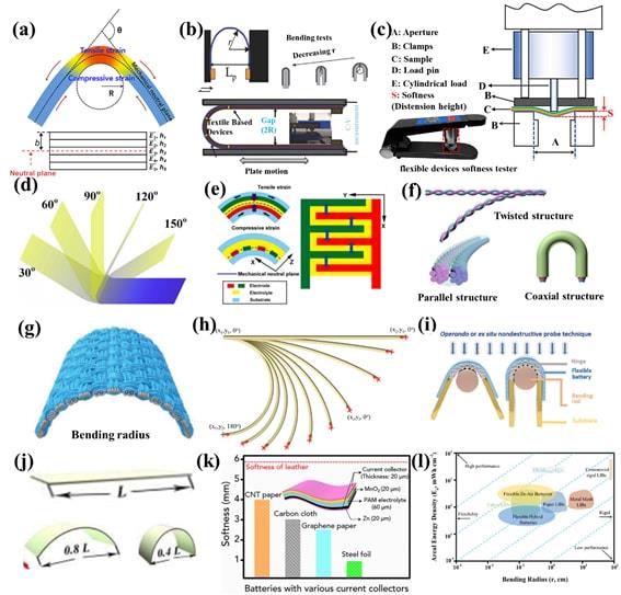 該綜述從電極的柔性化、電解質(zhì)的固態(tài)化、器件結(jié)構(gòu)和機(jī)械柔性的表征等方面系統(tǒng)的介紹和分析了柔性固態(tài)水系電池。如圖2所示,首先分析了柔性固態(tài)水系電池的器件結(jié)構(gòu)(平面三明治結(jié)構(gòu)、平面插齒結(jié)構(gòu)和纖維狀結(jié)構(gòu))及設(shè)計(jì)原則,詳細(xì)介紹了機(jī)械柔性的表征儀器和測試參數(shù)。隨后,重點(diǎn)介紹不同離子柔性固態(tài)水系電池的最新研究進(jìn)展。最后,對柔性固態(tài)水系電池目前存在的挑戰(zhàn)進(jìn)行了闡述,并從能量密度、穩(wěn)定性、儲能機(jī)理、導(dǎo)電性、多功能性、測試標(biāo)準(zhǔn)、可穿戴性和大規(guī)模制備等方向?qū)ξ磥淼陌l(fā)展進(jìn)行展望。