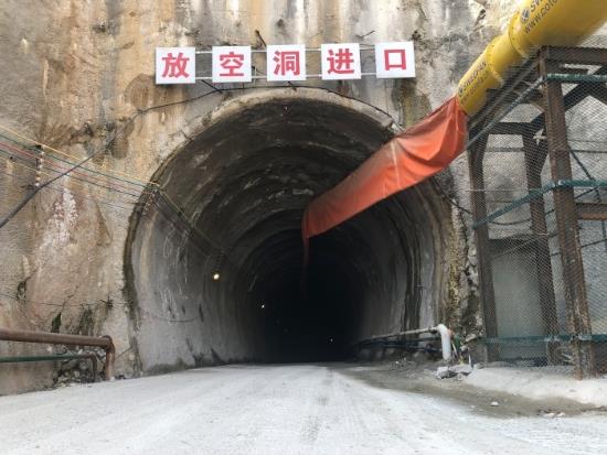 電站放空洞位于下水庫(kù)河床左岸山體內(nèi),斜井段長(zhǎng)度111.447米,傾角為30度的緩斜井,開挖難度大,施工安全風(fēng)險(xiǎn)高,同時(shí)還面臨汛期過流的工期壓力。項(xiàng)目部結(jié)合施工工期和安全要求,采用“自上而下開挖為主、上下同時(shí)開挖相結(jié)合”的斜井施工方案,從上平段正井開挖,全斷面一次爆破,使用單筒絞車牽引有軌礦用斗車出渣;從下平段進(jìn)入自下而上分臺(tái)階爆破開挖,反鏟扒渣至平段裝車出渣。
