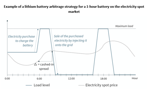 在法國(guó),這些靈活性資源的開發(fā)得到了開放新市場(chǎng)的支持,以獲得更多的收入。而對(duì)電價(jià)預(yù)測(cè)表明,鋰離子電池儲(chǔ)能系統(tǒng)不太可能僅基于現(xiàn)貨市場(chǎng)上的買賣套利策略獲利。在這樣的策略中,儲(chǔ)能系統(tǒng)在電價(jià)低時(shí)購(gòu)買和儲(chǔ)存電力,然后在電價(jià)上漲時(shí)將其出售并注入電網(wǎng),例如峰值電力需求期間。