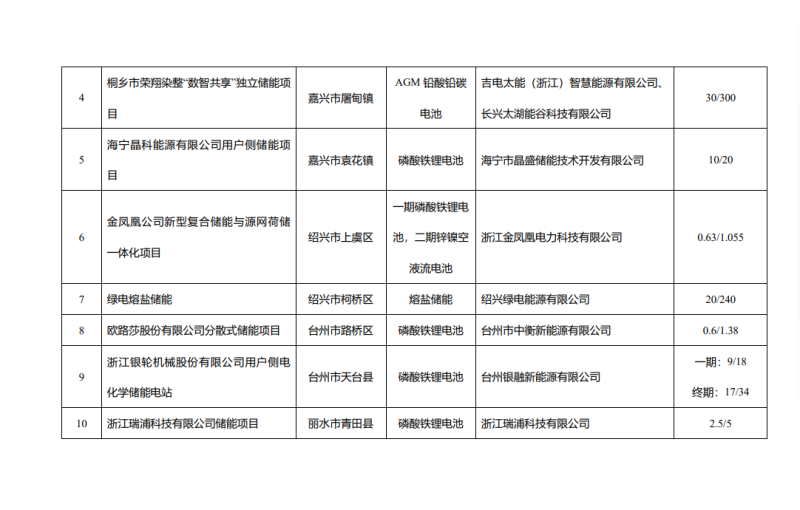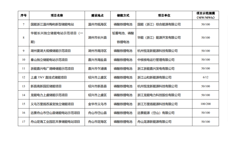 省發(fā)展改革委關(guān)于浙江省新型儲(chǔ)能示范項(xiàng)目的公示