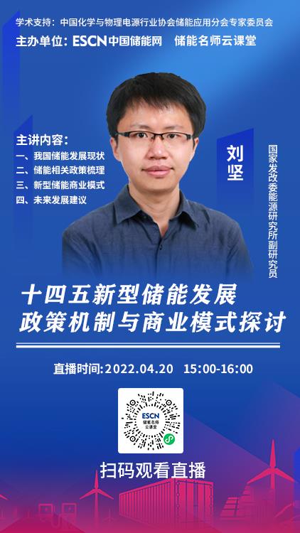 4月20日下午15:00-16:00,中國儲能網(wǎng)非常榮幸地邀請到國家發(fā)展和改革委員會能源研究所副研究員劉堅做客“ESCN儲能名師云課堂”(在線直播),為大家分享《十四五新型儲能發(fā)展政策機(jī)制與商業(yè)模式探討》主題報告。歡迎業(yè)界同仁在線學(xué)習(xí)與交流。