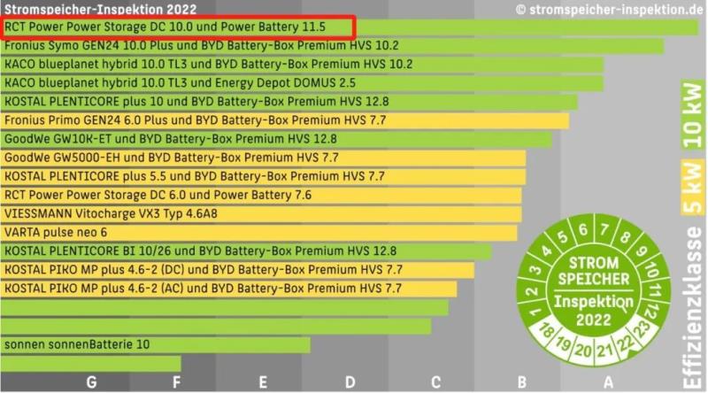 經(jīng)過權(quán)威檢測,RCT Power Storage DC 10.0和Power Battery 11.5組成的10kW戶用儲能系統(tǒng)實現(xiàn)了95.1%的能源效率認(rèn)證。該項檢測每年都會進行一次,今年是第五年,由HTW Berlin對歐洲市場上各大主流戶用儲能產(chǎn)品進行測試。值得一提的是,從2018年開始,阿詩特能源(RCT Power)連續(xù)三年都穩(wěn)居測試第二名(2018,2019,2020),2021年一躍成為排行冠軍。