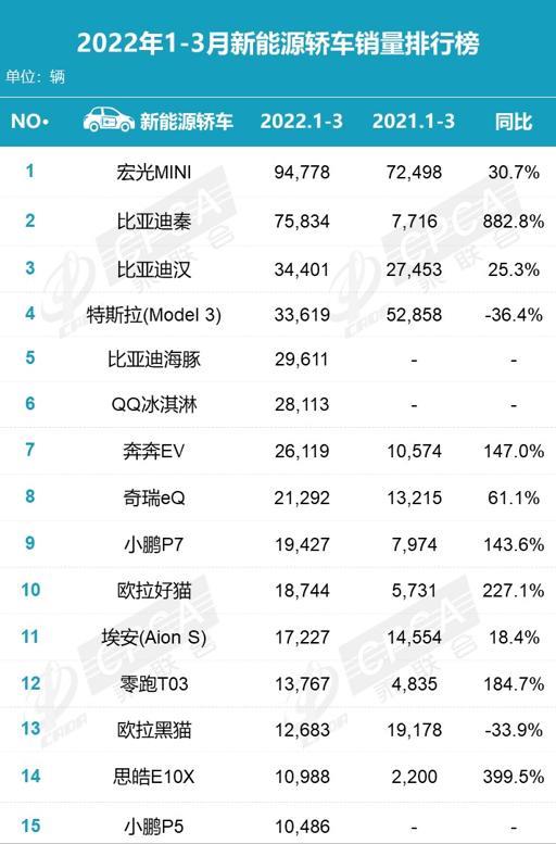 無獨(dú)有偶,除了五菱宏光MINI,在銷量排行榜中前十的微型電動車還有長安奔奔EV、QQ冰淇淋、奇瑞eQ等車型,幾乎占據(jù)了整個(gè)新能源轎車市場的半壁江山,并且長安奔奔EV今年一季度的銷量同比增長了147%、奇瑞eQ也同比增長了61.1%,均呈現(xiàn)出了爆發(fā)式增長。