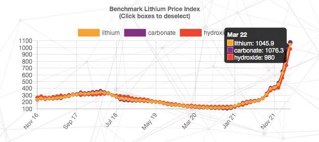 追蹤全球電池供應鏈的市場研究機構Benchmark Mineral Intelligence的數(shù)據(jù)顯示,從2019年底到今年3月,電池級鈷的價格大約上漲了兩倍,硫酸鎳、碳酸鋰上漲了約85%和670%。烏克蘭危機發(fā)酵后,由于來自俄羅斯的鎳供應受阻,鎳價也翻了一倍多,創(chuàng)史上新高。