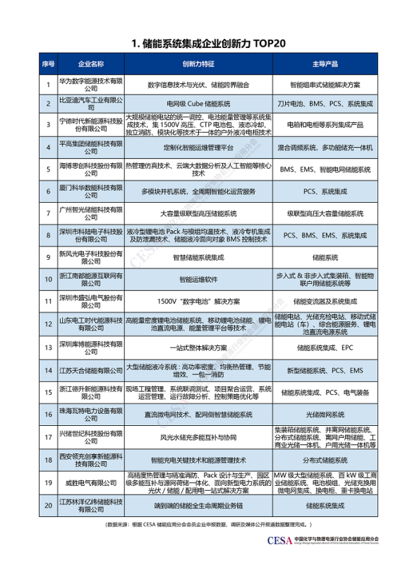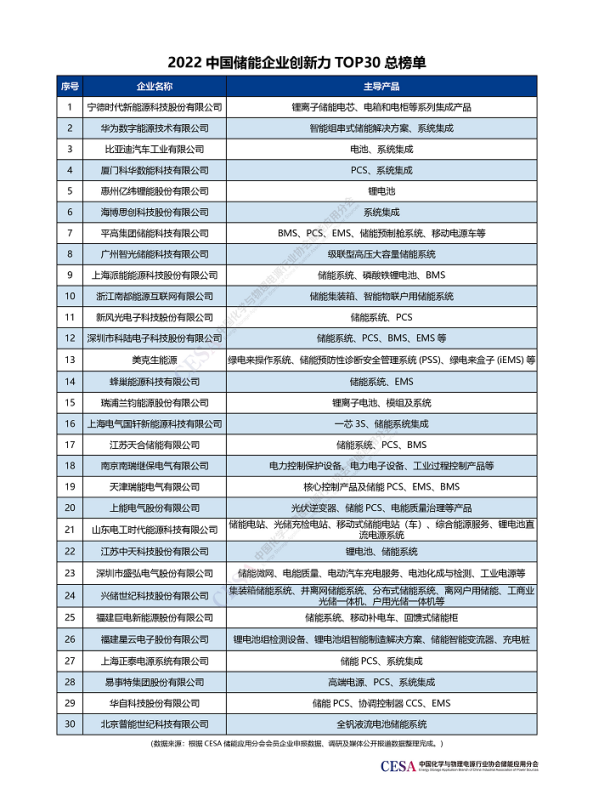 2022中國儲能企業(yè)創(chuàng)新力TOP30總榜單