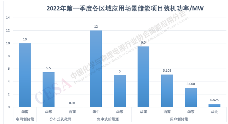 2022年第一季度集中式新能源項(xiàng)目主要集中在華中和華東地區(qū);用戶側(cè)儲(chǔ)能項(xiàng)目集中在華南、西南地區(qū)。