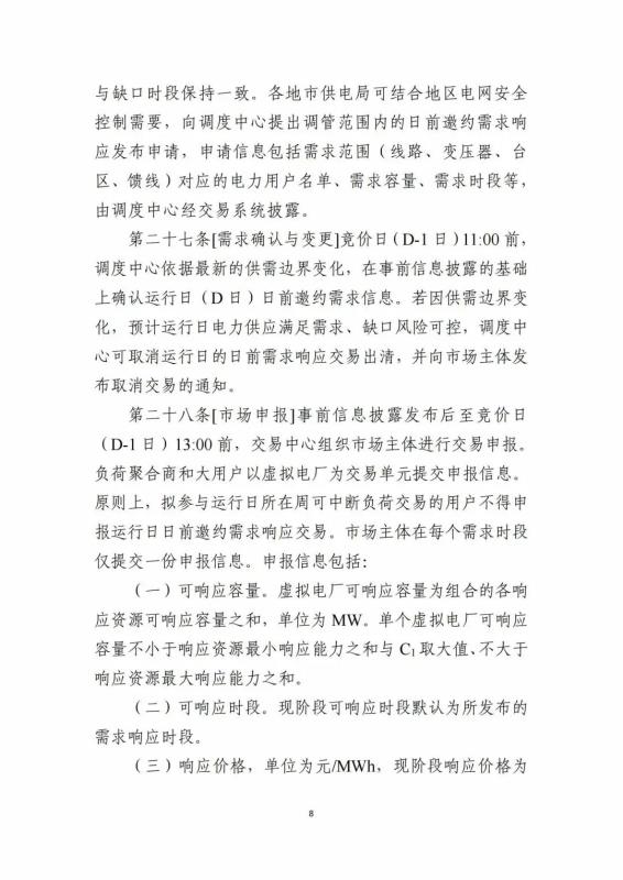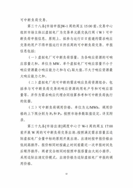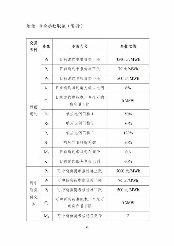 現(xiàn)階段可響應(yīng)時(shí)段默認(rèn)為所發(fā)布的需求響應(yīng)時(shí)段。響應(yīng)價(jià)格現(xiàn)階段響應(yīng)價(jià)格為9單段報(bào)價(jià),具備條件后可啟用多段報(bào)價(jià)。日前邀約申報(bào)價(jià)格上限為3500元/MWh;日前邀約虛擬電廠申報(bào)可響應(yīng)容量下限0.3MW,可中斷負(fù)荷申報(bào)價(jià)格上限為5000元/MWh;可中斷負(fù)荷虛擬電廠申報(bào)可響應(yīng)容量下限為0.3MW。