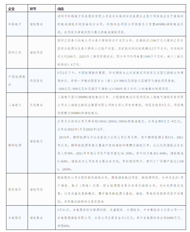 圖表5 2022年3月儲(chǔ)能商業(yè)動(dòng)態(tài)