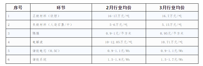 圖表3 2022年3月儲(chǔ)能產(chǎn)品價(jià)格變動(dòng)