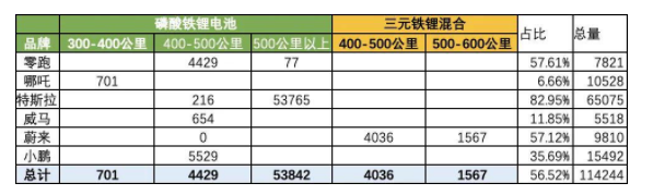 如果進(jìn)一步細(xì)分到主要的新勢力企業(yè),我們可以看到隨著磷酸鐵鋰企業(yè)的供給越來越多,特別是支持 500 公里續(xù)航的鐵鋰電池量產(chǎn),特斯拉和蔚來所主導(dǎo)的鐵鋰替換速度會逐步加快,因為這個確實有成本優(yōu)勢。