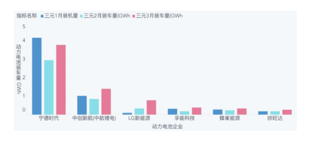 第一季度動力電池裝車量累計 51.3GWh,三元電池裝車量累計 21.4GWh,占總裝車量 41.7%。磷酸鐵鋰?yán)塾?29.8GWh,占總裝車量 58.2%。從裝車數(shù)據(jù)能看到動力電池的火爆需求。