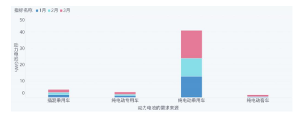 第一季度使用電池最多的是純電動乘用車,41.24GWh 占比 80.59%,排名第二是插電混動乘用車,4.91GWh,占比 9.59%。乘用車在現(xiàn)在動力電池需求占比超過了 9 成,商用車大巴和專用車分別為 3.36GWh 和 4.91GWh。