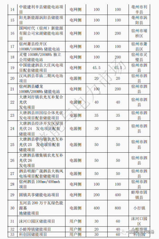 電網(wǎng)側(cè)強(qiáng)調(diào)集中式儲(chǔ)能電站,淮北、宿州、蚌埠、亳州等地區(qū),以及合肥、滁州等負(fù)荷中心區(qū)域,是電網(wǎng)側(cè)獨(dú)立儲(chǔ)能電站重點(diǎn)發(fā)展區(qū)域。