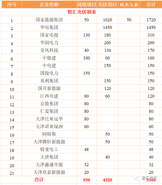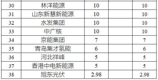 表:天津2021~2022年風電、光伏新增項目的投資企業(yè)分布(單位:MW)