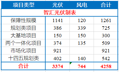 2021年,河北省共下發(fā)了42.58GW的各類項目名單,如下表所示。