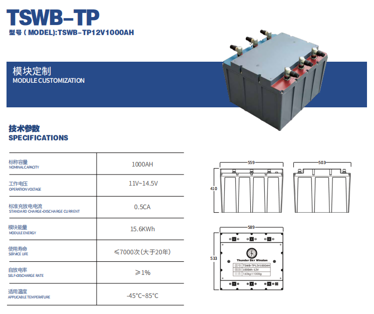 TP型模塊化系列產(chǎn)品可根據(jù)用戶(hù)需求設(shè)計(jì)訂制、使用儲(chǔ)能型LYP系列水性單體大容量電芯,實(shí)現(xiàn)大容量高電壓12V/24V/48/96V-1500V模組儲(chǔ)能系統(tǒng)應(yīng)急解決方案。