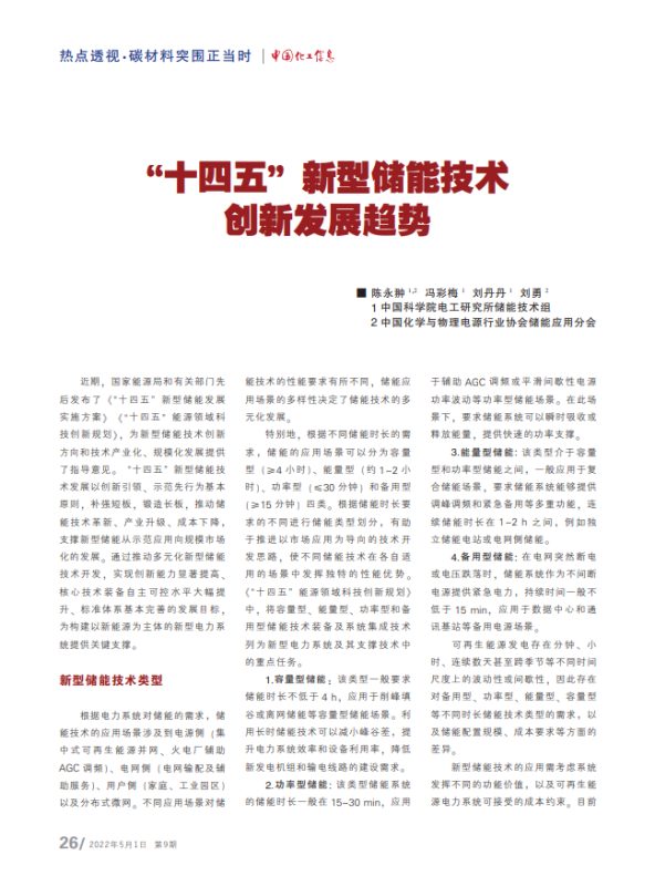 近期,國家能源局和有關(guān)部門先后發(fā)布了《“十四五”新型儲能發(fā)展實施方案》、《“十四五”能源領(lǐng)域科技創(chuàng)新規(guī)劃》,為新型儲能技術(shù)創(chuàng)新方向和技術(shù)產(chǎn)業(yè)化、規(guī)?;l(fā)展提供了指導意見?!笆奈濉毙滦蛢δ芗夹g(shù)發(fā)展以創(chuàng)新引領(lǐng)、示范先行為基本原則,補強短板,鍛造長板,推動儲能技術(shù)革新、產(chǎn)業(yè)升級、成本下降,支撐新型儲能從示范應(yīng)用向規(guī)模市場化的發(fā)展。通過推動多元化新型儲能技術(shù)開發(fā),實現(xiàn)創(chuàng)新能力顯著提高、核心技術(shù)裝備自主可控水平大幅提升、標準體系基本完善的發(fā)展目標,為構(gòu)建以新能源為主體的新型電力系統(tǒng)提供關(guān)鍵支撐。