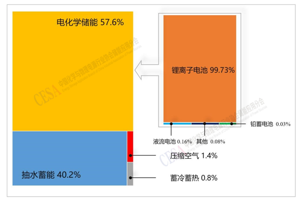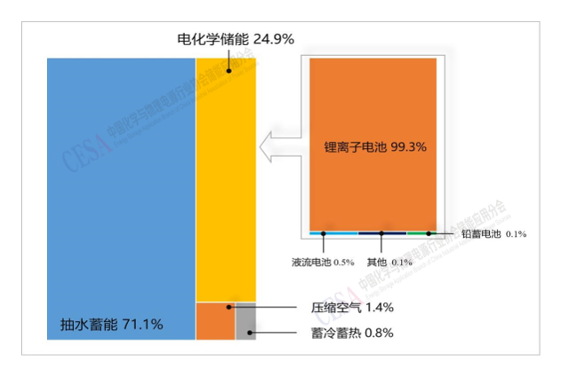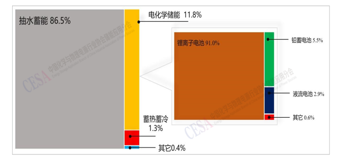圖表2–1 中國(guó)儲(chǔ)能技術(shù)裝機(jī)功率比例
