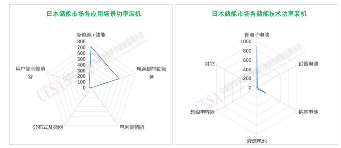 圖表1–9 日本電化學(xué)儲(chǔ)能市場(chǎng)各應(yīng)用場(chǎng)景和技術(shù)裝機(jī)