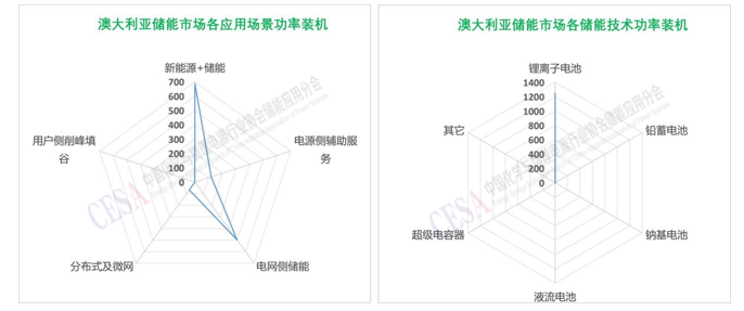 圖表1–8 澳大利亞電化學(xué)儲(chǔ)能市場(chǎng)各應(yīng)用場(chǎng)景和技術(shù)裝機(jī)