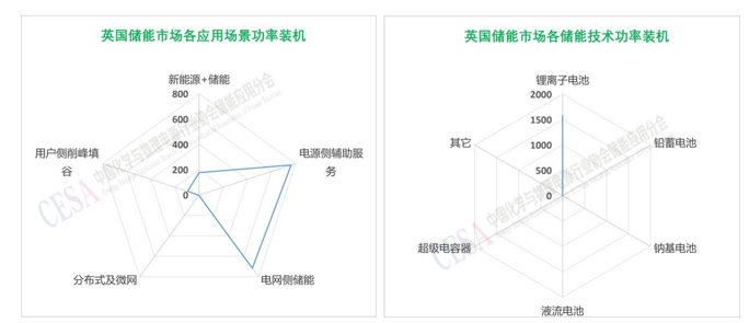 圖表1–7 英國(guó)電化學(xué)儲(chǔ)能市場(chǎng)各應(yīng)用場(chǎng)景和技術(shù)裝機(jī)