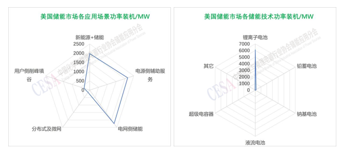 圖表1–5美國(guó)電化學(xué)儲(chǔ)能市場(chǎng)各應(yīng)用場(chǎng)景和技術(shù)裝機(jī)