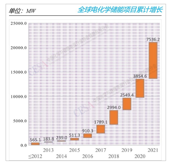 2、2021年全球新增電化學(xué)儲(chǔ)能首次突破7GW