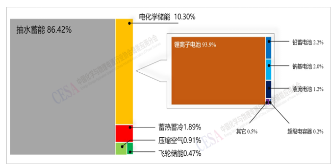 圖表1–1全球儲(chǔ)能技術(shù)裝機(jī)功率比例