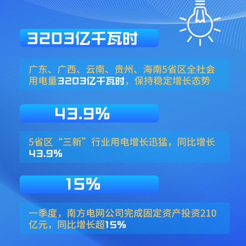 一季度,南方5省區(qū)新動能發(fā)展迅速,用電需求持續(xù)上升。南方電網(wǎng)公司提前對接用戶需求,積極服務(wù)以新產(chǎn)業(yè)、新業(yè)態(tài)、新模式為代表的“三新”經(jīng)濟(jì)發(fā)展。