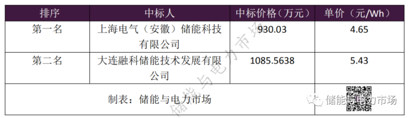 中國儲能網(wǎng)訊:4月24日,國家電投海陽儲能電站1MW/2MWh 全釩液流電池系統(tǒng)設(shè)備采購進行了候選人公示,上海電氣(安徽)儲能科技有限公司以930.03萬元報價(折合單價4.65元/Wh)成為第一中標候選人。大連融科儲能技術(shù)發(fā)展有限公司以1085.5638萬元報價(折合單價5.43元/Wh)位列第二。