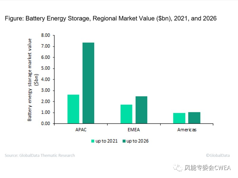GlobalData 的報(bào)告發(fā)現(xiàn),預(yù)計(jì)全球市場(chǎng)在預(yù)測(cè)期內(nèi)都將大幅增長(zhǎng),其中亞太地區(qū)市場(chǎng)將領(lǐng)先。預(yù)計(jì) 2026 年亞太市場(chǎng)將達(dá)到 73.3 億美元;占全球市值的近68%。亞太地區(qū)中,中國(guó)、日本、印度、韓國(guó)和澳大利亞等國(guó)家將推動(dòng)該地區(qū)市場(chǎng)的領(lǐng)先。更多的投資將增加可再生能源的滲透率、提高系統(tǒng)的靈活性和彈性,并在各自的國(guó)家電網(wǎng)中提供輔助服務(wù)。另外,電網(wǎng)改造、提高電氣化率以及為快速增長(zhǎng)的人口提供電力等因素,也將為儲(chǔ)能創(chuàng)造更多市場(chǎng)機(jī)會(huì)。