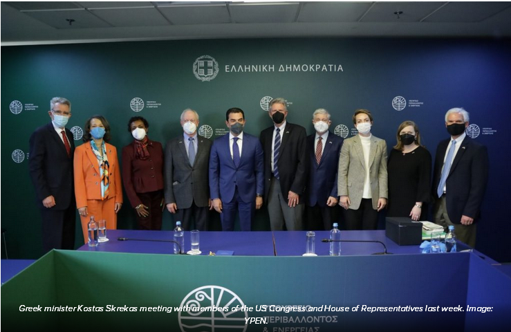 希臘環(huán)境和能源部長Kostas Skrekasd 4月19日會(huì)見了美國國會(huì)和眾議院的一些議員
