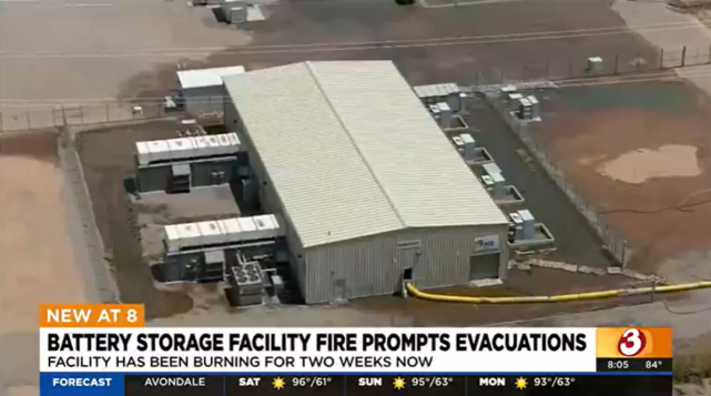 中國儲能網(wǎng)訊:美國當?shù)貢r間4月30日新聞稱,Chandler電池儲能項目已經(jīng)燃燒了兩個星期。在消防隊員監(jiān)控情況的同時,四分之一英里內(nèi)的企業(yè)被敦促撤離。這一命令在晚上7點左右結(jié)束。