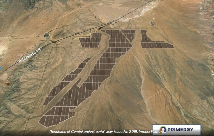 投資商Quinbrook Infrastructure Partners公司和能源項(xiàng)目開(kāi)發(fā)商Primergy公司日前表示,已經(jīng)確定Gemini太陽(yáng)能+儲(chǔ)能項(xiàng)目的交易,將在內(nèi)華達(dá)州克拉克縣部署一個(gè)690MW太陽(yáng)能發(fā)電場(chǎng)和380MW/1,416MWh電池儲(chǔ)能系統(tǒng)。