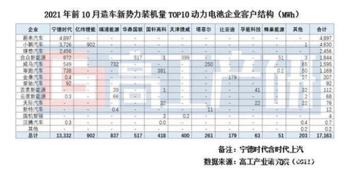 資料顯示,此前寧德時(shí)代一直是蔚來的獨(dú)家供應(yīng)商,其中70KWh、80KWh項(xiàng)目由寧德供應(yīng)模組,75KWh、100KWh項(xiàng)目供應(yīng)整包;小鵬方面,寧德時(shí)代是主力供應(yīng)商,2021年供應(yīng)占比超80%;理想的各主力車型電池也是由寧德時(shí)代獨(dú)供。
