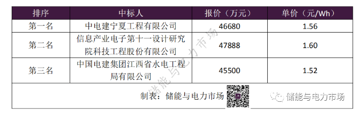 中國儲能網(wǎng)訊:5月6日,寧夏所屬風電、光伏配套150MW/300MWh儲能項目EPC總承包工程發(fā)布中標公告,中電建寧夏工程有限公司以46680萬元(折合單價1.56元/Wh)的報價成為第一候選人。