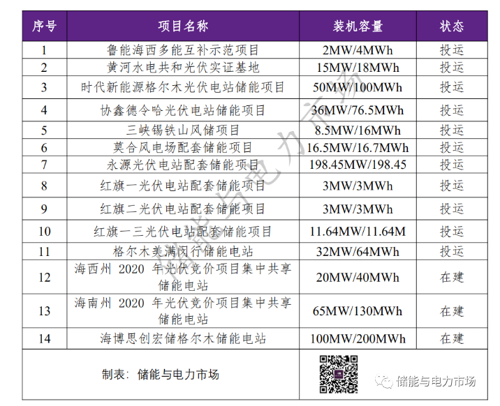 附錄,青海省投運、在建儲能項目一覽