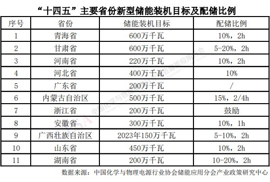中國儲能網(wǎng)訊:2021年7月,國家發(fā)展改革委、國家能源局聯(lián)合發(fā)布《關(guān)于加快推動新型儲能發(fā)展的指導(dǎo)意見》,到2025年,新型儲能裝機規(guī)模達3000萬千瓦以上。2022年3月,《“十四五”新型儲能發(fā)展實施方案》進一步明確發(fā)展目標和細化重點任務(wù)。為加快推進新型儲能規(guī)?;瘧?yīng)用,推動新型儲能快速發(fā)展,全國多省市自治區(qū)陸續(xù)提出了“十四五”新型儲能裝機目標。