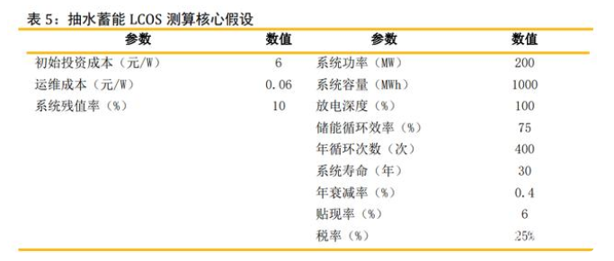 抽水蓄能全壽命儲(chǔ)能度電成本(LCOS)測(cè)算核心假設(shè):
