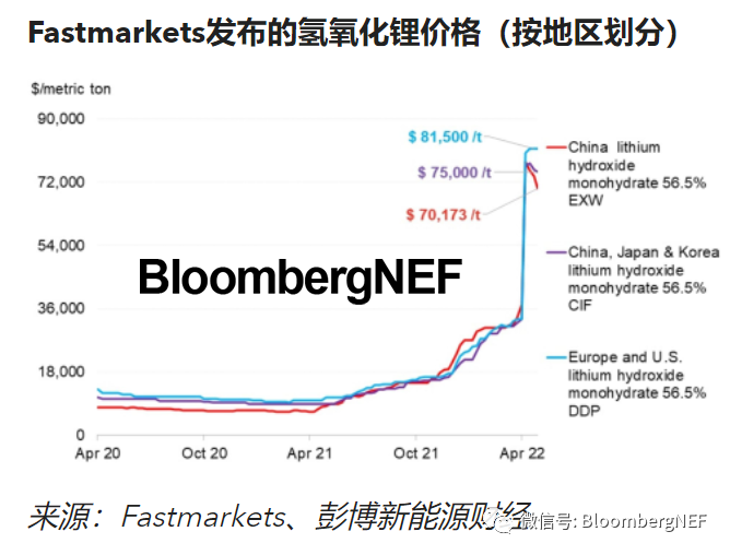 4月歐洲和美國(guó)氫氧化鋰價(jià)格峰值