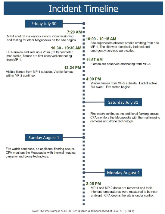 VBB電池儲(chǔ)能項(xiàng)目火災(zāi)事故時(shí)間表