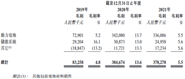 其中,中創(chuàng)新航動(dòng)力電池的毛利由截至2020年12月31日止年度的3.421億元減少1.8%至截至2021年12月31日止年度的3.361億元,截至2020年及2021年12月31日止年度的毛利率由13.7%下降至5.5%,主要是由于正極材料和電解液等價(jià)格大幅上漲所致。