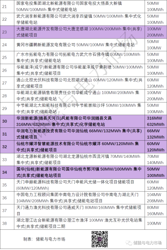 湖北省獨(dú)立儲(chǔ)能電站列表