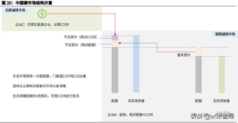 (4) 可再生能源項(xiàng)目可通過(guò)配置儲(chǔ)能,增加出售 CCER 的收益。光伏和風(fēng)電屬于可再 生能源發(fā)電項(xiàng)目,通過(guò)替代基準(zhǔn)線情景下以火電為主的該區(qū)域電網(wǎng)的同等電量, 實(shí)現(xiàn)了溫室氣體減排。隨著 CCER 審批迎來(lái)重啟,可再生能源有望獲得額外競(jìng)爭(zhēng) 優(yōu)勢(shì)和附加收入,可再生能源企業(yè)可通過(guò)出售 CCER 獲得收益。 碳成本、綠證成本的內(nèi)部化有望增加儲(chǔ)能經(jīng)濟(jì)性。若電力資源交易市場(chǎng)、碳交易 市場(chǎng)得到大力發(fā)展,碳交易、綠證成本計(jì)入儲(chǔ)能項(xiàng)目成本,有望增加經(jīng)濟(jì)性,實(shí) 現(xiàn)平價(jià)。