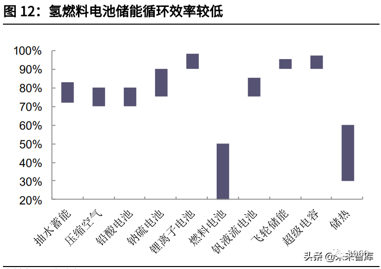 1.2.3、氫儲(chǔ)能能量密度高,在大規(guī)模儲(chǔ)能極具潛力