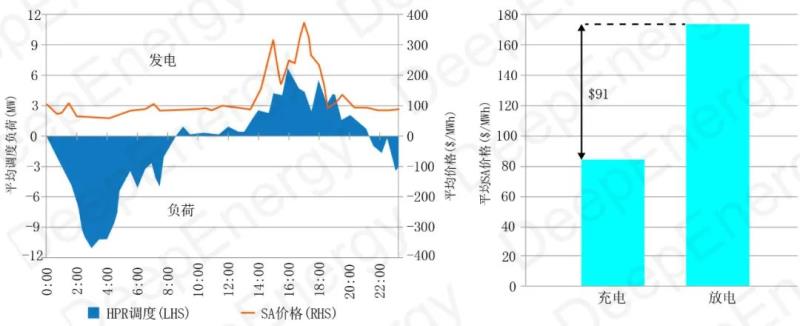 圖4 Hornsdale調(diào)度曲線和平均充放電價(jià)