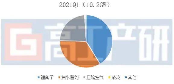 2021年Q1國內(nèi)儲(chǔ)能新增裝機(jī)量結(jié)構(gòu)(GW)