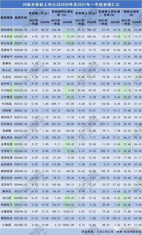 附錄:2020年及2021年第一季度30家充電樁上市公司業(yè)績(jī)大PK