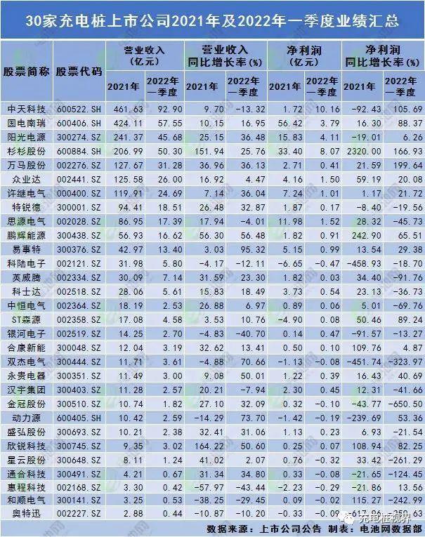 同時(shí),受益于充電基礎(chǔ)設(shè)施建設(shè)提速,充電樁產(chǎn)業(yè)鏈相關(guān)上市公司2021年以及2022年一季度經(jīng)營(yíng)業(yè)績(jī)表現(xiàn)喜人。