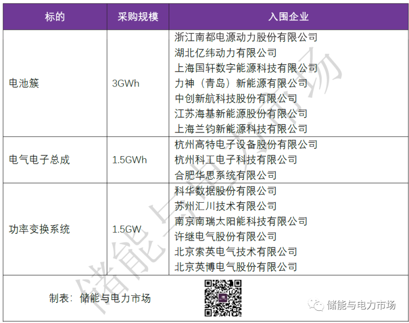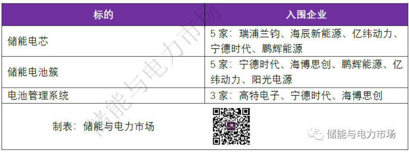 儲能電池簇、電氣電子、PCS入圍供應(yīng)商結(jié)果